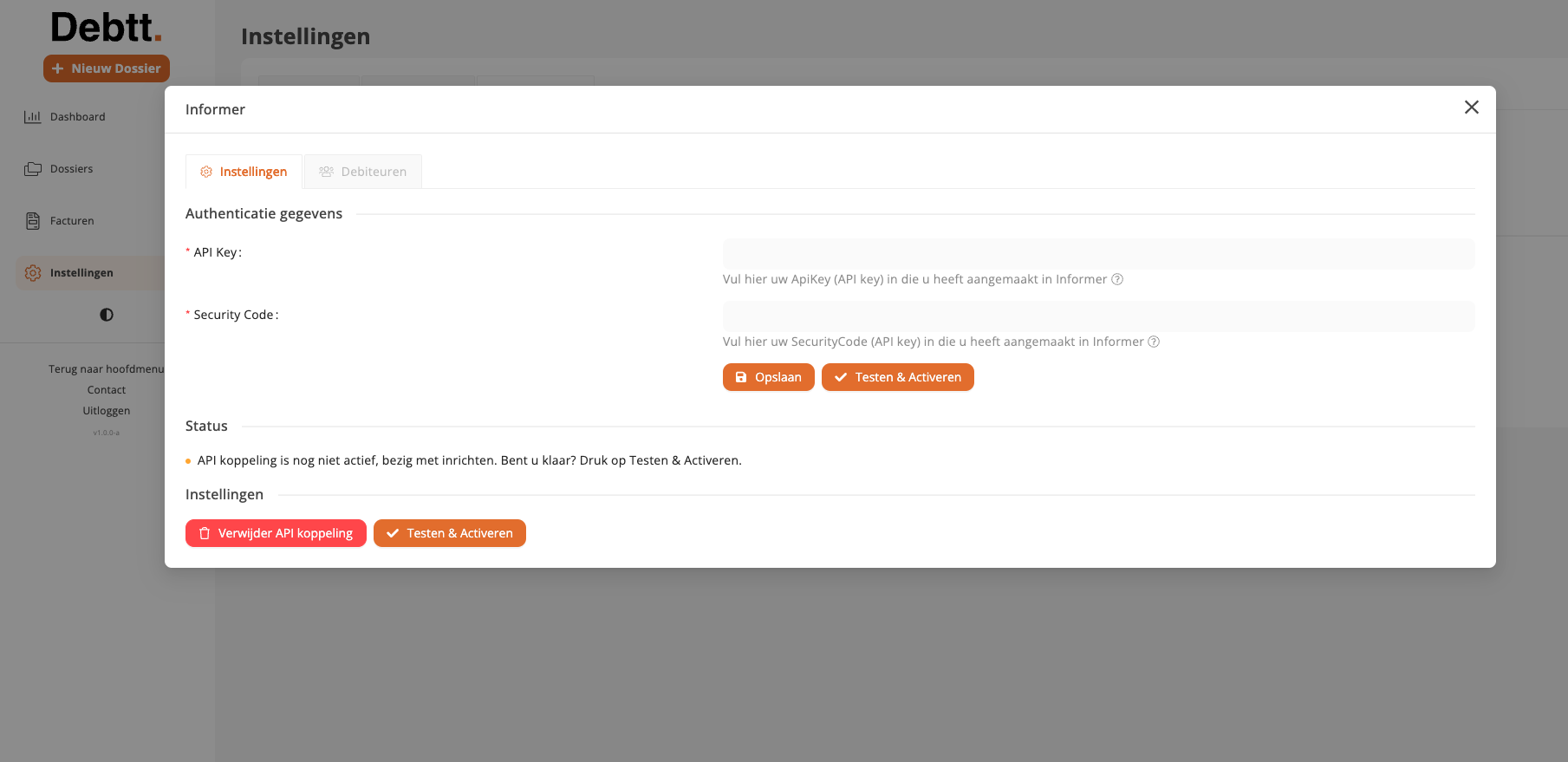 De koppeling met Informer is eenvoudig in te stellen. Zorg dat u uw informer gegevens bij de hand heeft en uw SecurityCode (Hiermee logt u ook in bij Informer)