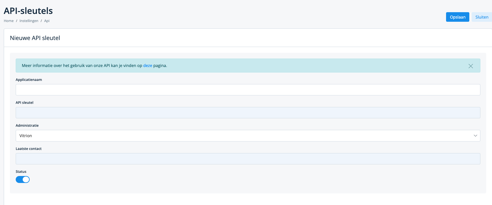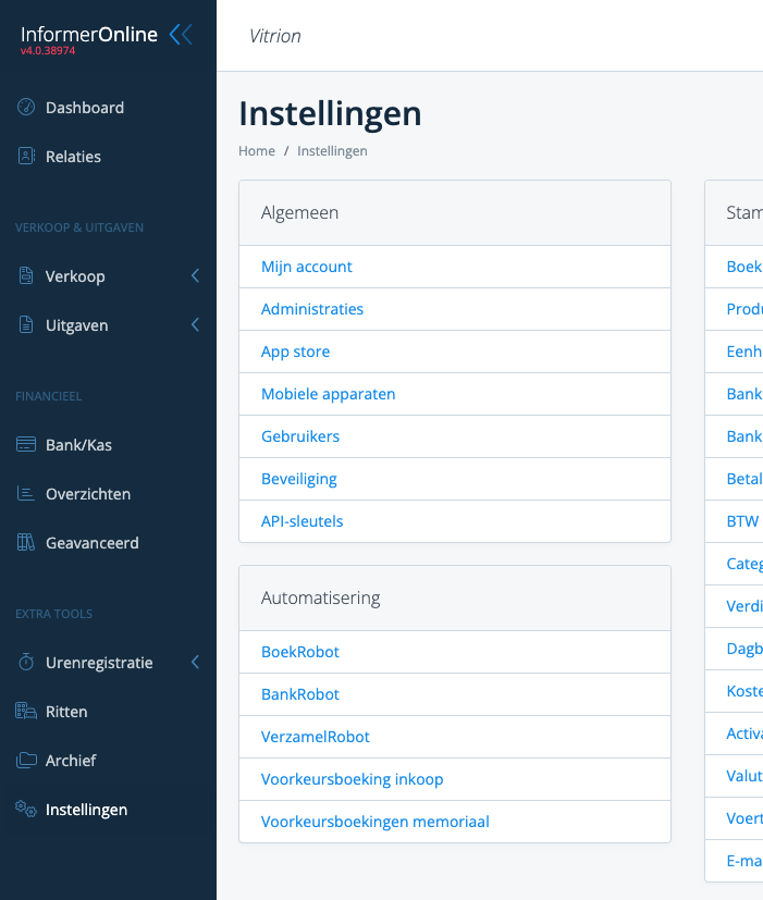 Wanneer u ingelogd bent in Informer, ga naar instellingen -> API Sleutels
