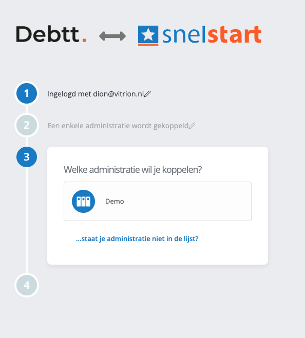 Nadat u heeft ingelogd, wordt u gevraagd om een administratie te kiezen. Kies hierbij de administratie die bij het eerder geselecteerde bedrijf hoort.